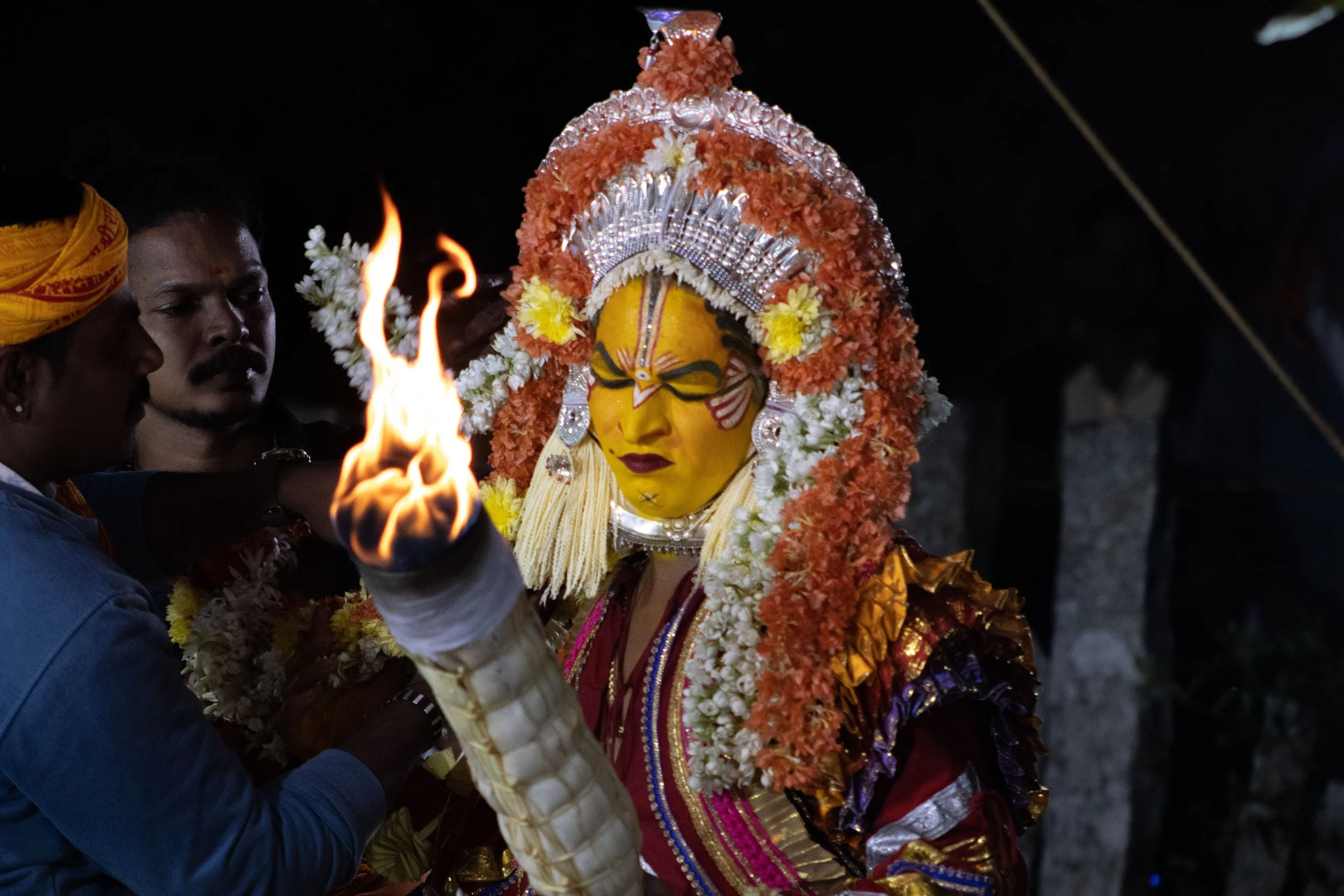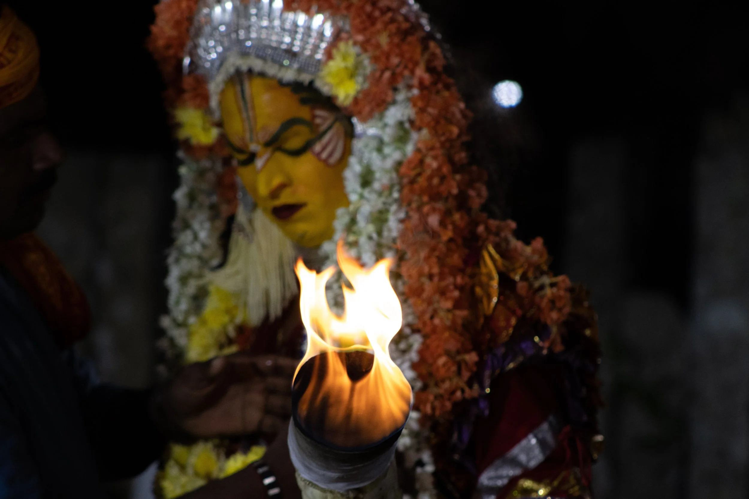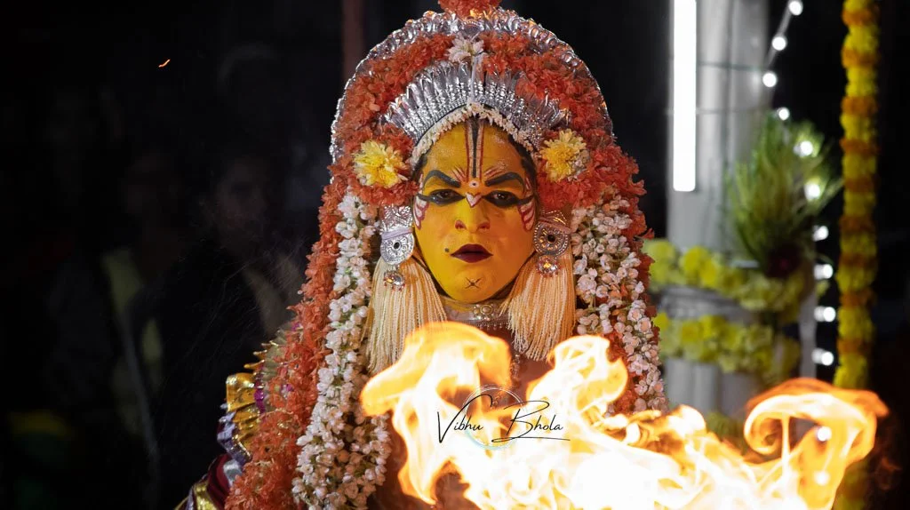 Būta Kōlā is a traditional folk festival that is celebrated in various parts of Karnataka, particularly in the coastal regions. It is a form of spirit worship that involves the invocation of local deities or spirits through dance, music, and rituals. The festival is typically performed by members of the local communities, who believe that it helps to ward off evil spirits and bring good fortune. During the festival, performers wear elaborate costumes and masks, often made of natural materials like wood and leaves, and perform intricate dance movements to the beat of drums and other musical instruments. Bhoot Kola is a vibrant and colorful celebration of Karnataka's rich cultural heritage, and it attracts visitors from all over the region to witness the spectacle of this unique festival.